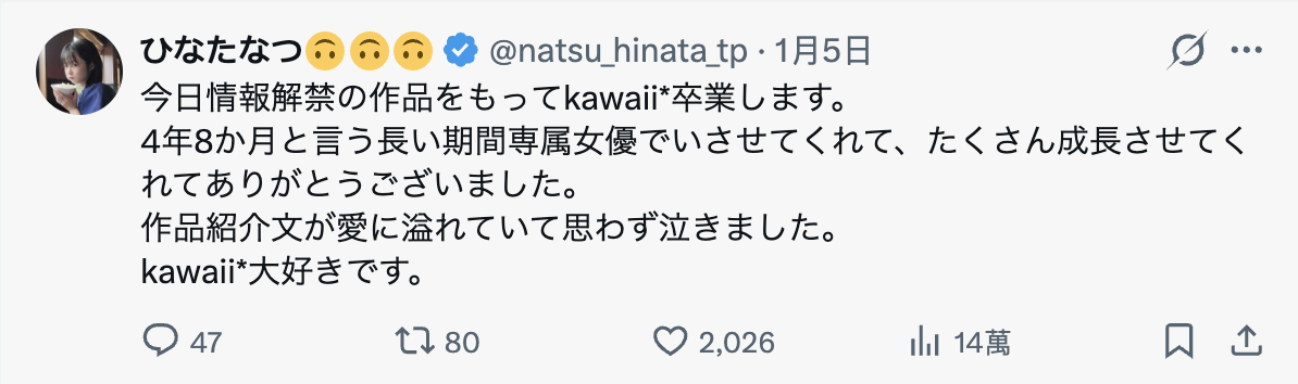 在可愛社(kawaii*)待了四年八個月之後,ひなたなつ(日向夏)要離開了!