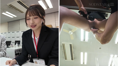 所以這支共演反而反映出SOD STAR的危機了。不過我們先把女優的問題放一邊,來看看這支共演作:SOD STAR是把好久不見的「1日SOD女子社員」企劃拿出來用,讓一宮るい(一宮留衣)和天神羽衣別上名牌體驗SOD女子社員的生活ー作品企畫會議、AV攝影的準備工作,然後在工作的時候,在眾目睽睽之下,執行業務的兩人總是會被竄出來的「黑子」男優(簡單簡單說就是帶著頭套的蒙面男友,SOD很喜歡用這樣的方式告訴大家他們是隱形的,不會有人注意到的)騷擾,輕則脫掉她們的內褲用各種情趣用品攻擊,重則直接做給大家看,而兩位女優為了證明SOD女子社員都是非常專心在上班的所以無論碰到什麼樣的攻擊都不會受到影響,天神羽衣甚至可以邊做筆記邊潮吹⋯
